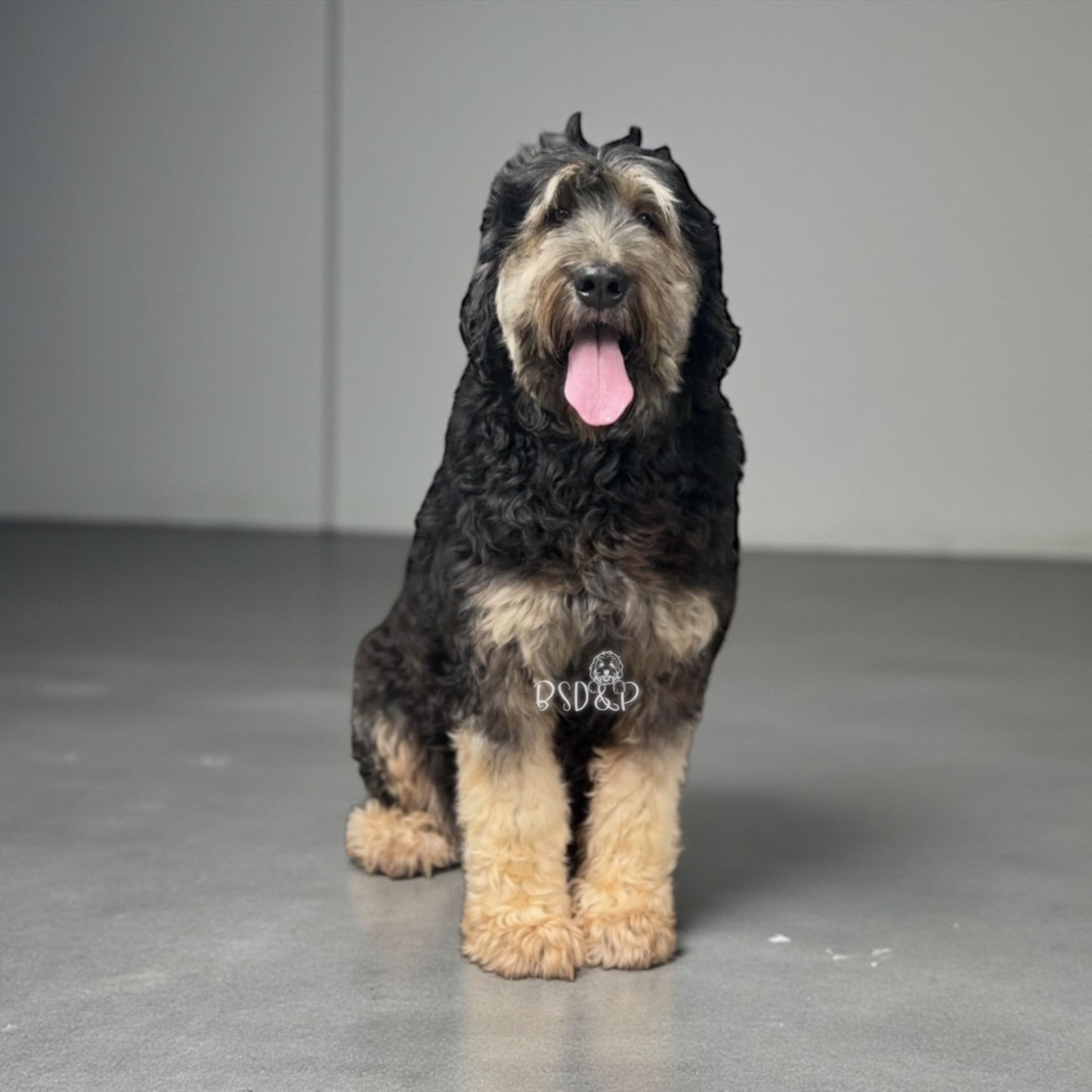Indy is a Standard F1 Bernedoodle weighing 95lb. This is our biggest girl of the pack but the most laid back of all. She is what you call a true gentle giant. Indy loves going on walks and just being right by our side. Getting belly rubs is also one of her favorite things. She is a giant southern sweet heart.